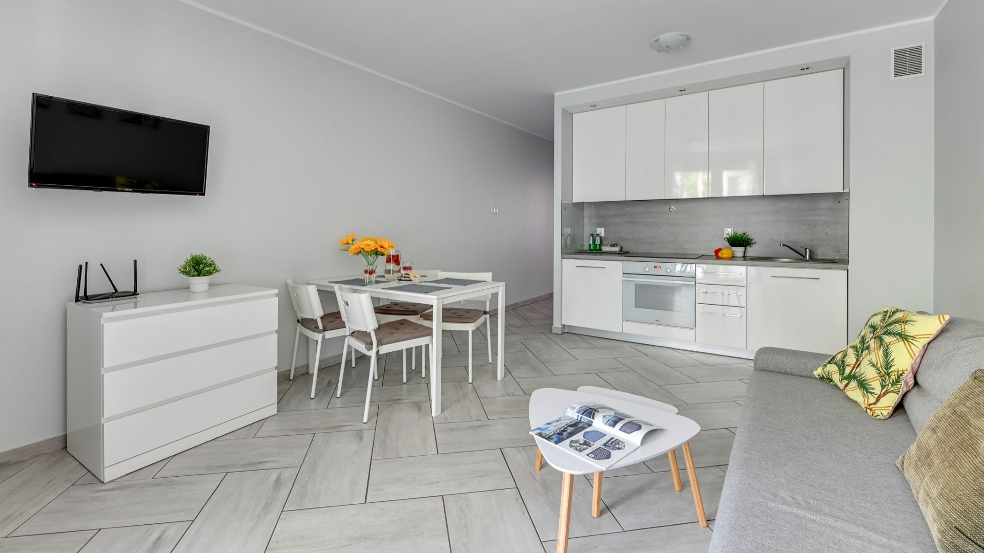 W obiekcie dysponujemy czterema apartamentami. Każdy z nich składa się z aneksu kuchennego połączonego z salonem, oddzielnej sypialni oraz łazienki. Wszystkie apartamenty są wyposażone w najpotrzebniejsze akcesoria kuchenne, a niektóre z nich posiadają dodatkowo pralkę, zmywarkę, piekarnik i ekspres do kawy.